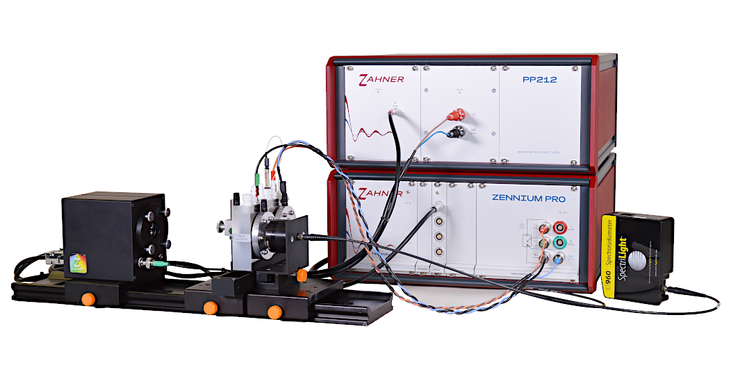 In CIMPS-ABS, two PECC-2 cells are mounted and used sequentially. One PECC-2 cell is used as a reference whereas the other is used for measurement. The reference cell aids in mitigating the artefacts due to light loss via reflection or electrolyte absorption which in turn helps in accurately measuring the absorption spectrum.